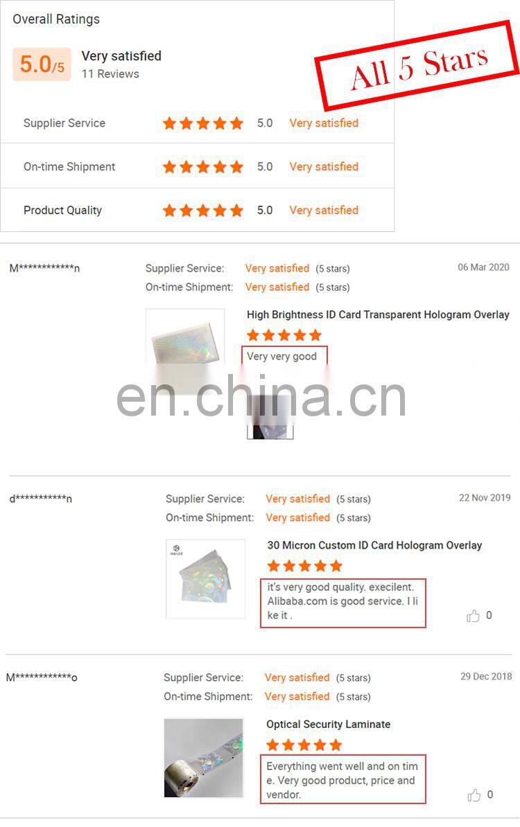 Главная > Продукты > Защитный ламинатный накладной слой > Пользовательский прозрачный голографический накладной слой для безопасности PVC-индивидуальных карт
