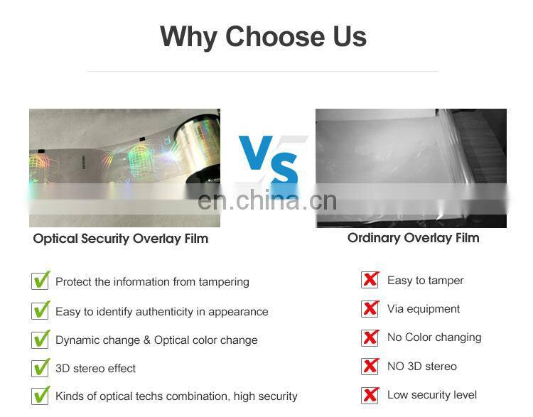 Главная > Продукты > Защитный ламинатный накладной слой > Прозрачный индивидуально изготовленный голографический термотрансферный ленточный катридж для использования на поверхности удостоверений личности