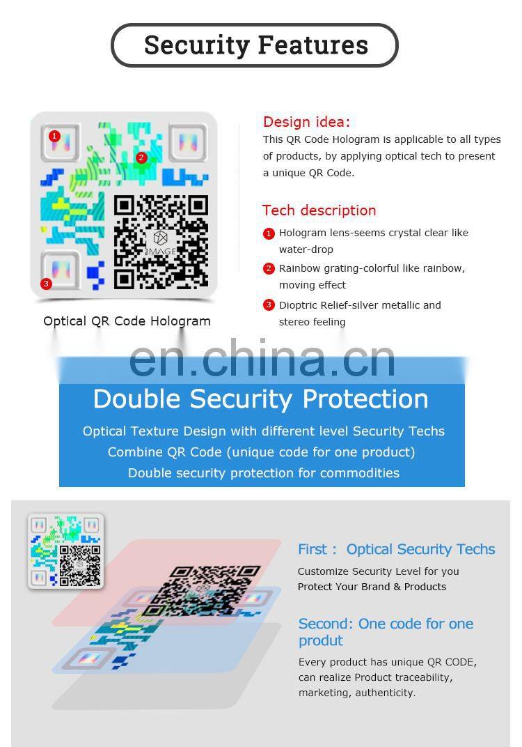 Название продукта:Настраиваемая 3D голографическая QR-кодовая антифальсификационная этикетка для аутентификации продуктов
