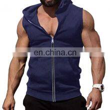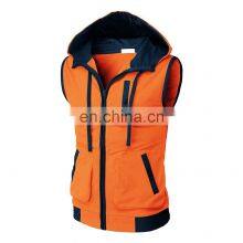2022 OEM под заказ печать хлопкового повседневного мужского безрукавного свитера с капюшоном и карманами