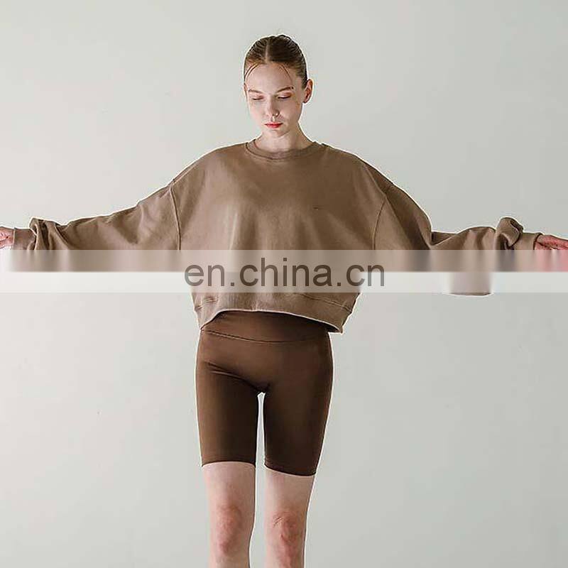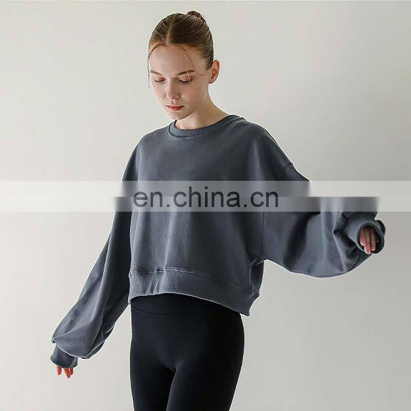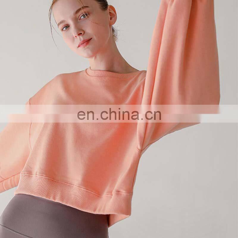 Главная > Продукты > Йога футболка > Популярные хлопчано-полиэфирные свитшоты с широким кройом и опущенными плечами, свободные блузки с крыловидными рукавами, простые пуловеры с круглым воротником для женщин