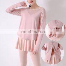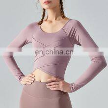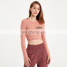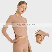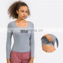 Оптовая встроенная бюстгальтер с длинными рукавами гимнастический йога кроп-топ с вырезом круглым воротником спортивный пуловер футболка для бега на улице