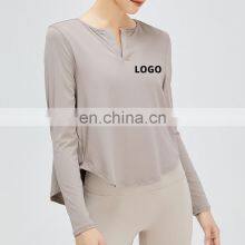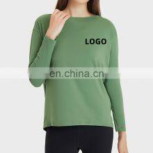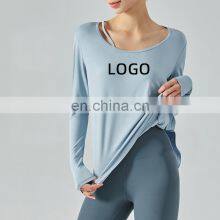 Новая спортивная футболка для занятий в зале с длинными рукавами из нейлона и спандекса с индивидуальным логотипом, оптовая, свободного кроя, быстросохнущая, женская спортивная одежда для фитнеса
