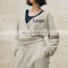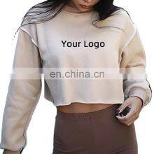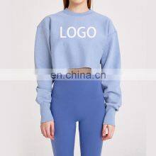 Кастомный логотип. Кэжуальные свободные свитшоты для женщин. Модные спортивные толстовки с длинными рукавами. Кроп-топы. Женские пуловеры. Одежда для фитнеса и йоги.