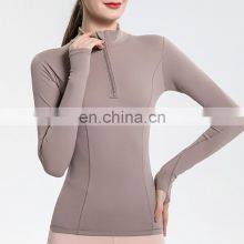 Готовые к отправке безграфические спортивные топы для женщин с индивидуальным логотипом для йоги, стройного кроя с половинным молниеносом, футболки для занятий в зале фитнеса