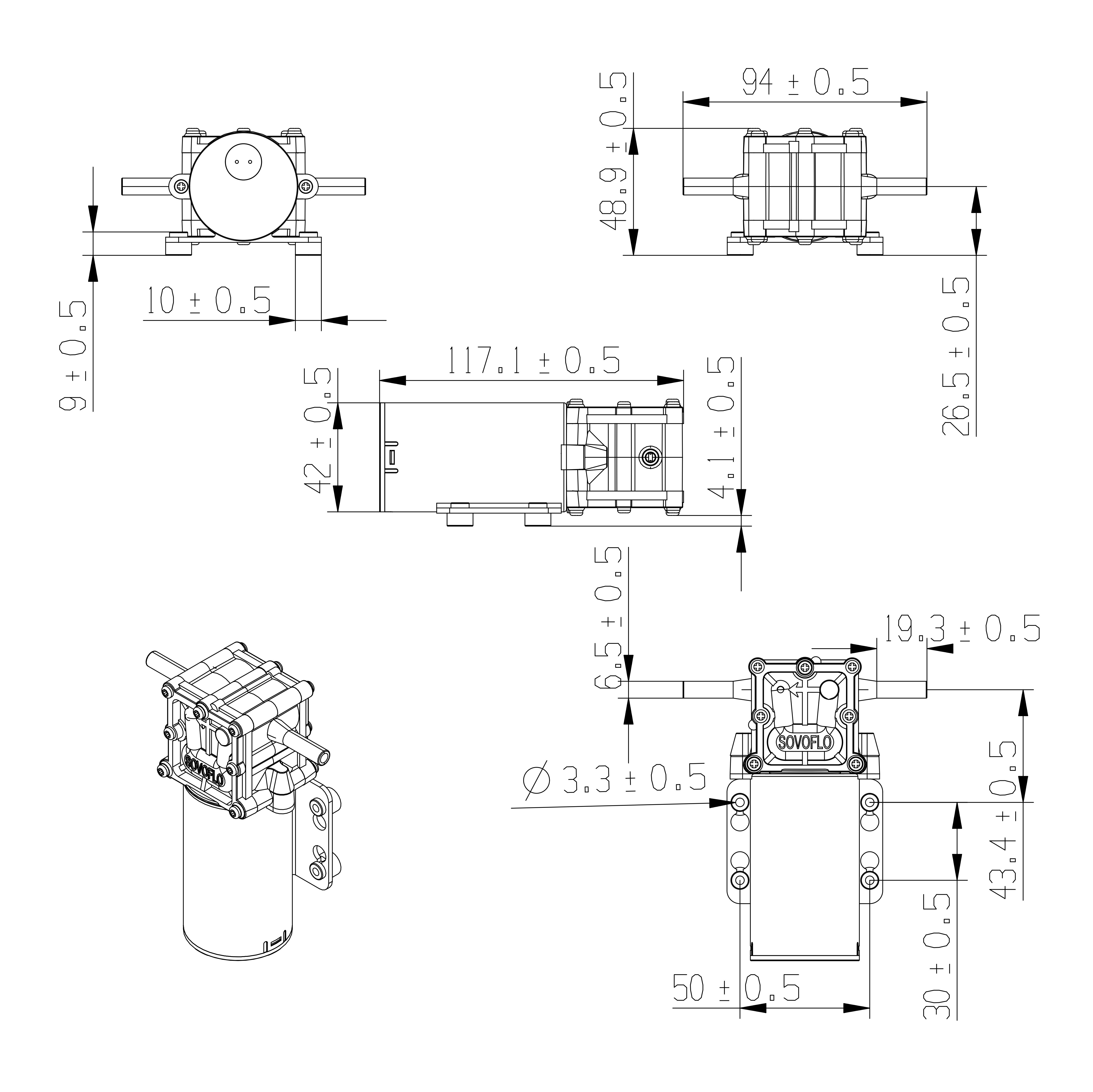 SOVOFLO Микродиафрагменный насос KDP-14 DC 12V 24V Электрический мембранный насос Высокий подъем 2 метра Самооткачивающийся водяной насос Коллекторный/безколлекторный двигатель Монтированный Низкий уровень шума Работает с холодной и горячей водой 0-100℃